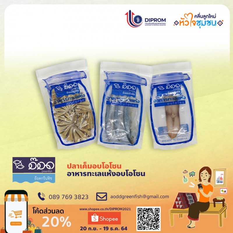 นายธนวัฒน์ แก้วช่วงศรี Aodd Green Fish กล่าวว่าแม้ว่าจะไม่มียอดสั่งซื้อตามเป้า ซึ่งอาจจะเป็นเพราะว่าอยู่ช่วงเทศกาลกินเจด้วย สินค้าจึงอาจะไม่ตอบโจทย์เท่ากับการออกบูธแสดงสินค้าของหน่วยงาน แต่ก็รู้สึกยินดีที่ได้เข้าร่วมโครงการนี้เพราะทำให้สินค้าเป็นที่รู้จักมากขึ้น ทั้งนี้ อ๊อด กรีน ฟิช เป็นสินค้าที่นำนวัตกรรมของโอโซนเข้ามาฆ่าเชื้อ ทำลายสารพิษในปลาเค็ม เราทำปลาเค็ม อาหารทะเลแห้งขึ้นมา เพื่อให้ผู้บริโภคได้รับประทานสินค้าที่ปลอดภัยจริง ๆ โดยสินค้าจะเป็นสินค้าจากปลาทะเลเป็นส่วนใหญ่ โดยมีราคาเพียง 100 บาท ราคาเดียว และยังได้รับมาตรฐานรับรองมากมาย เช่น GMP, CODEX, HACCP, อย., มผช. เป็นต้น เพื่อเป็นเครื่องยืนยันว่าสินค้าปลอดภัยจริง ๆ